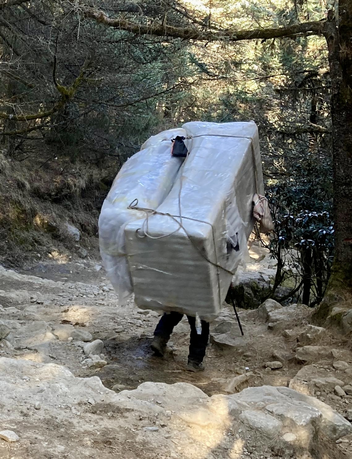 Nichée à 3440 m d'altitude, Namche Bazaar : dans les années 50 cette ville était réputée pour son commerce local, on y trouvait sur son marché du beurre et du fromage de lait de yak, ainsi que des produits cultivés en plus basse altitude. Après l'ascension du mont Everest par Edmund Hillary, elle est devenue très touristique puisque dernière ville traversée avant d'aller au camp de base. Elle est souvent surnommée « Capitale des Sherpas ». Sur le chemin qu'utilise les marcheurs pour arriver à Namche Bazaar, il faut traverser sur une passerelle les gorges étroites de la rivière Dudh Koshi. Cette passerelle est l'une des plus grande de ce genre.